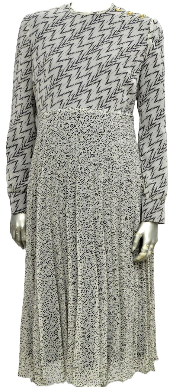 Umpire cut chiffon Maternity dress,mixed pleated bottom,gold button detail on shoulder and cuff.