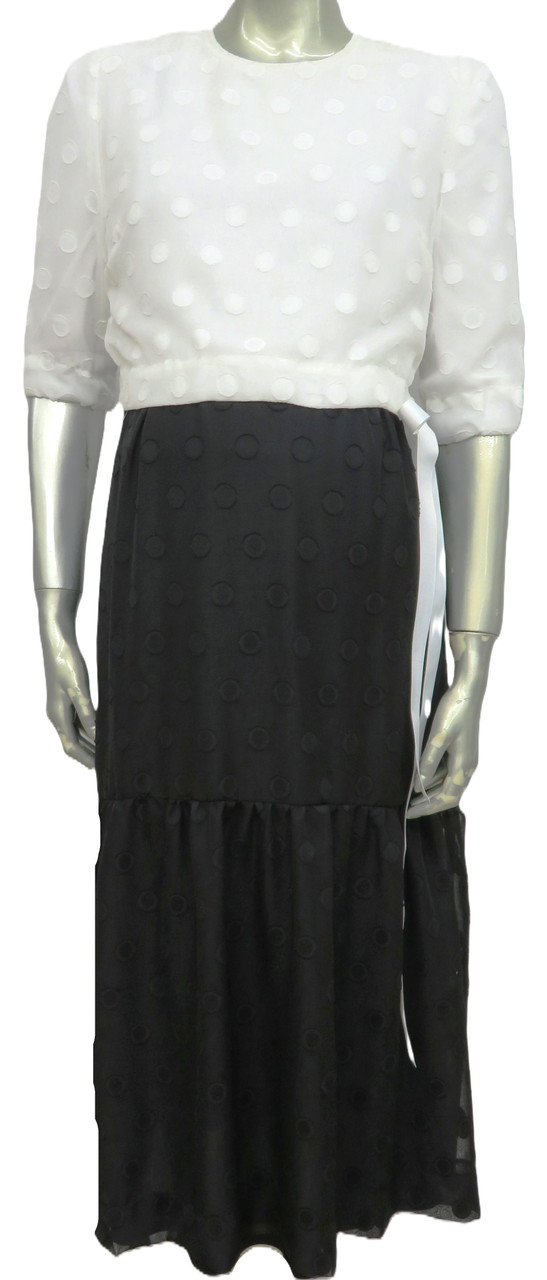 Jacquard chiffon dot overlay,with side tie on umpire cut dress