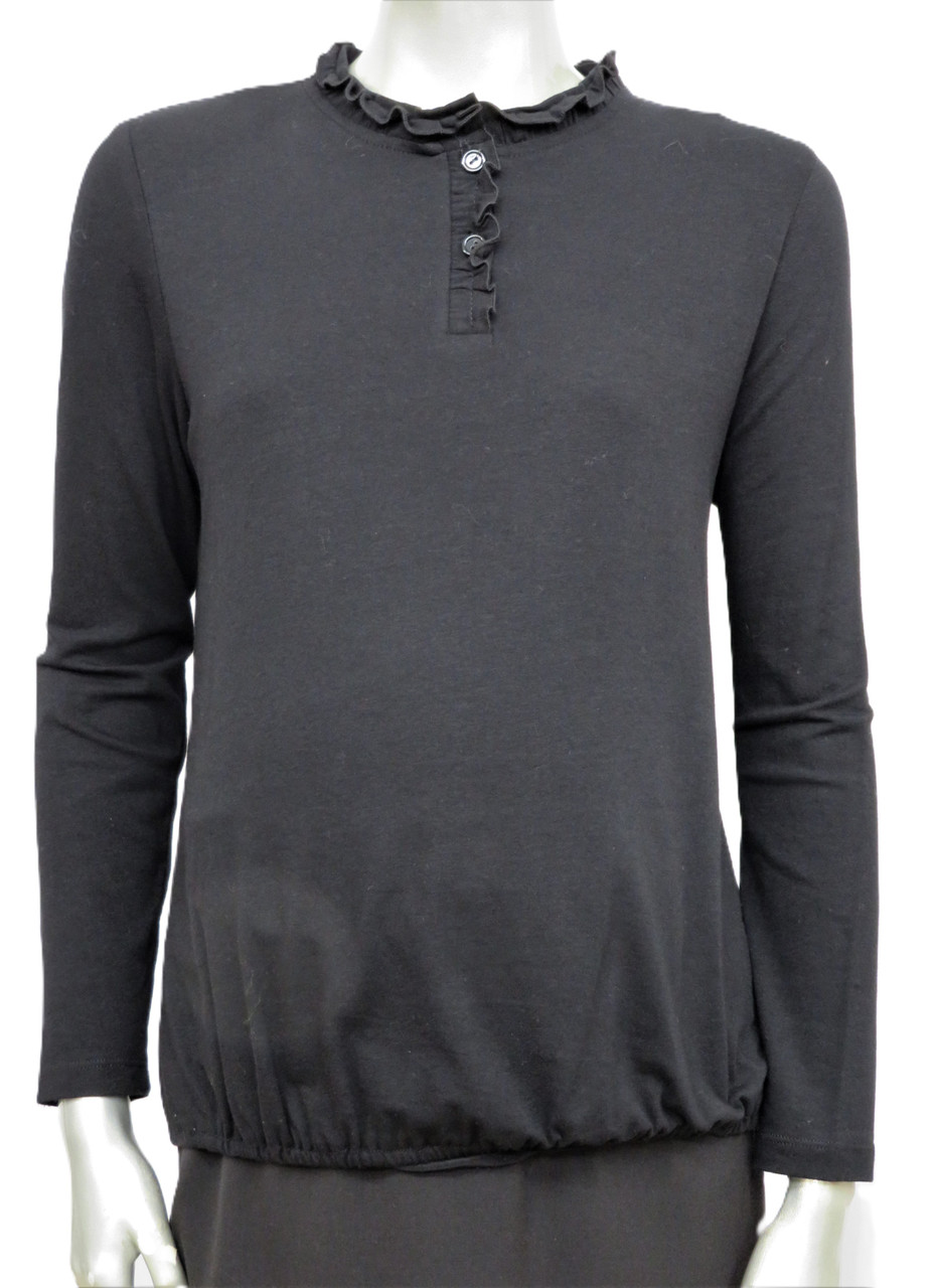 Jersey Henley maternity top with ruffled neckline and elastic hem