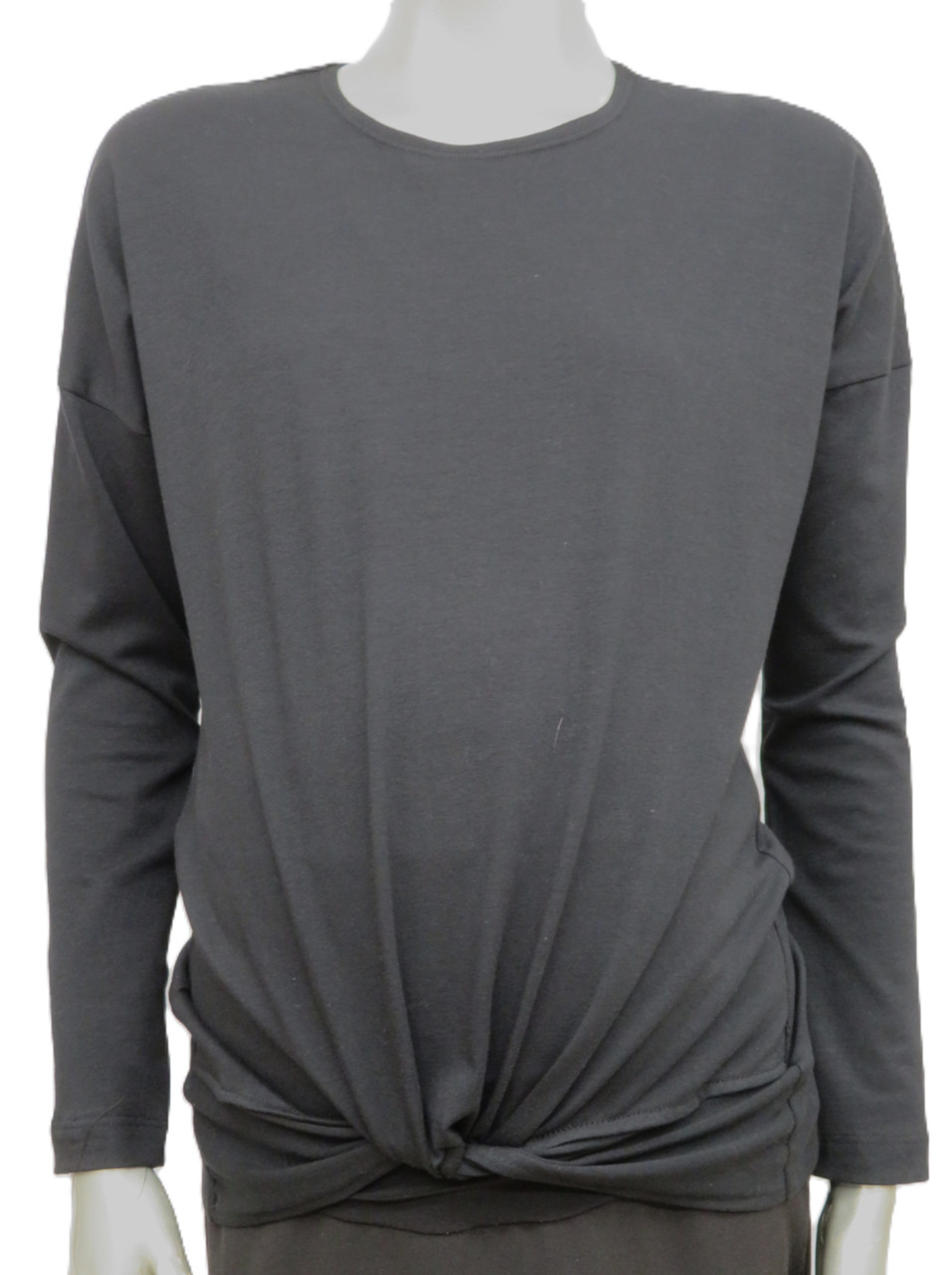 Drop shoulder top with twist bottom band detail